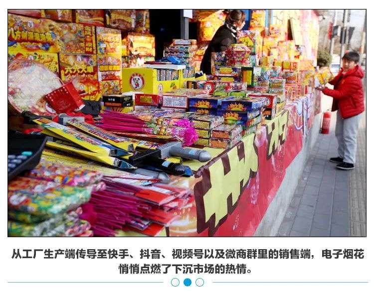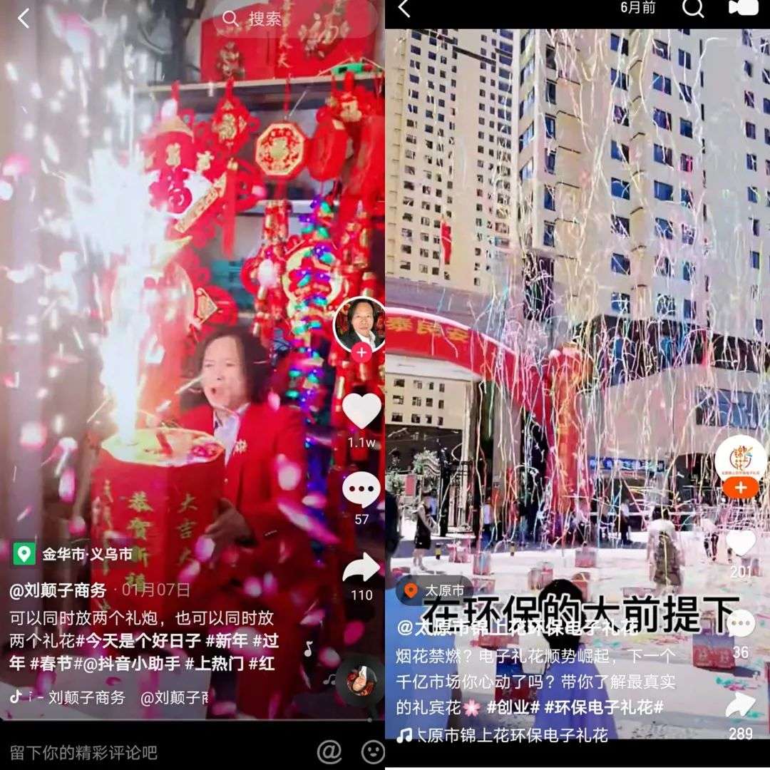 从工厂生产端传导至快手、抖音、视频号以及微商群里的销售端,电子烟花悄悄点燃了下沉市场的热情。