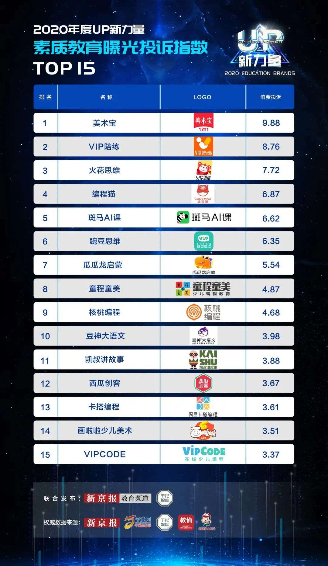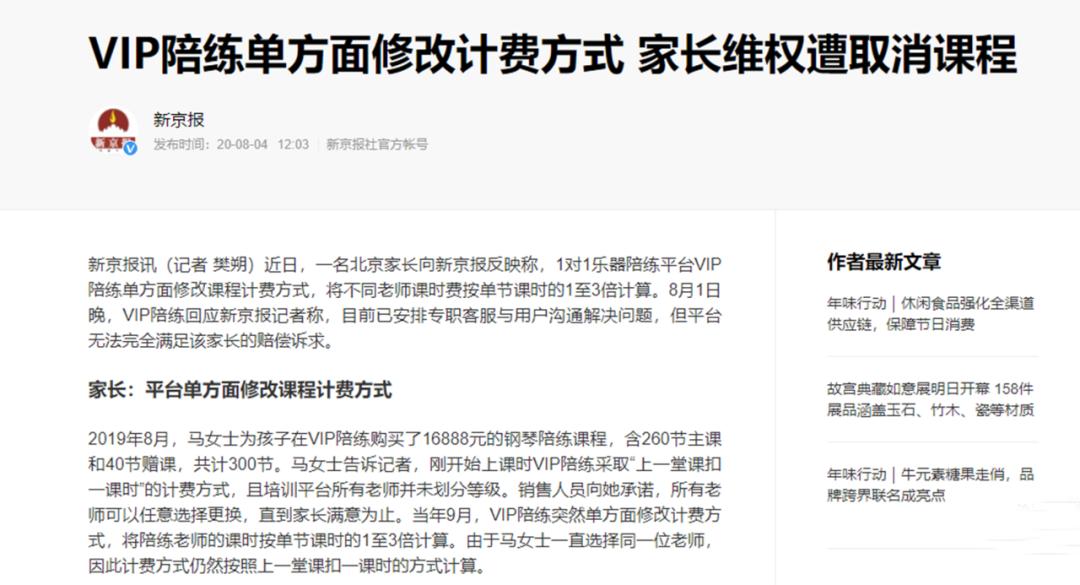 在近日新京报和千龙智库联合发布的一份“素质教育机构曝光投诉指数TOP15企业”榜单中,VIP陪练高居第二,也是唯一上榜的线上音乐教育平台。