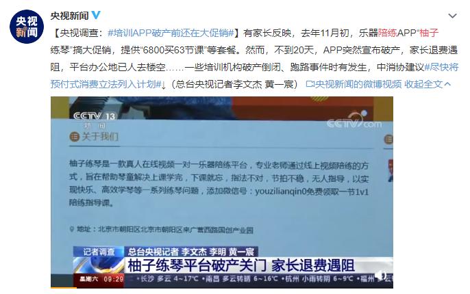 2020年11月底,柚子陪练一纸公文宣告破产,苦了已经预支付高额课费的家长和被拖欠多月工资的老师。柚子陪练在公文中表示,由于市场环境和经营不善,企业一直处于亏损状态,现金流断裂,资不抵债。而在半个月前,平台还在举办双十一优惠活动,吸引家长购买课程。