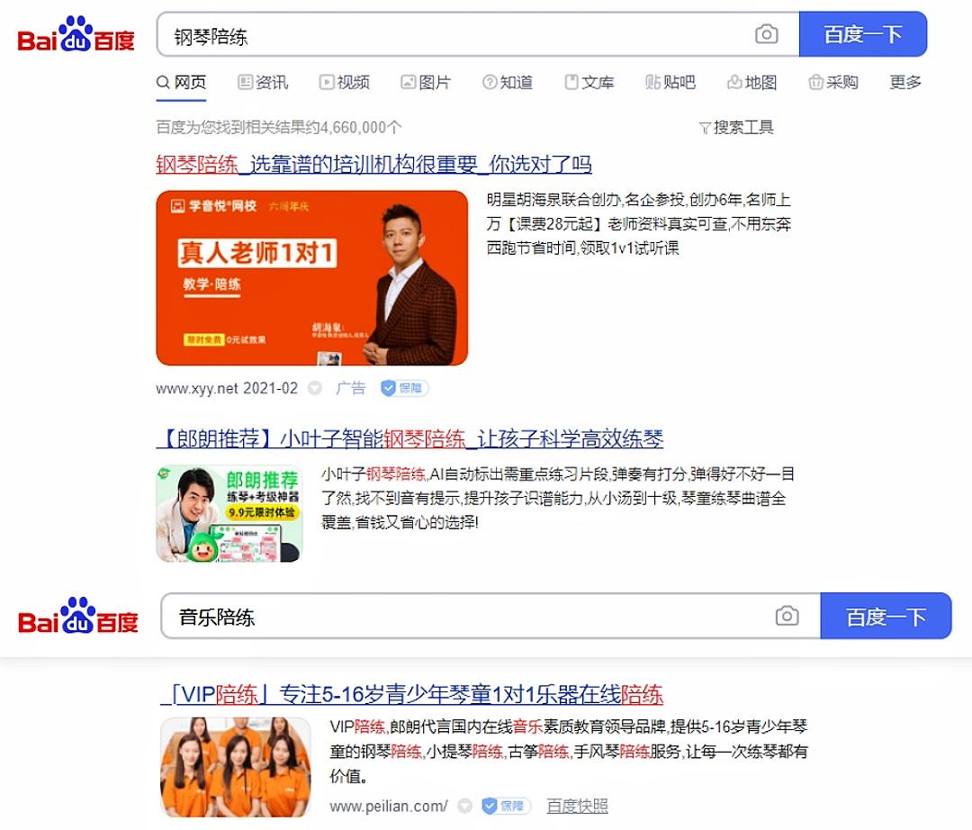 已经离职的业内人士何杉告诉新博弈(ID:newgametheory),在线音乐教育平台拉新获客主要通过三个渠道,第一是广告,第二是老用户转介绍,第三是和线下机构或老师合作推荐。平台每月在广告投放上开销巨大,广告主要投放在各级应用市场、信息流平台和通过各大社交媒体的KOL做内容植入,还有在搜索引擎投放关键词广告,获取访问量。另外,平台还通过电话外呼公司大面积接触潜在用户。