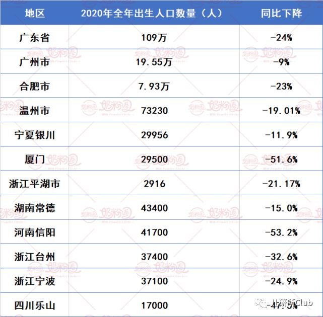 目前部分城市已经公布了2020年出生的人口数量,我们看到全部呈现负增长趋势。