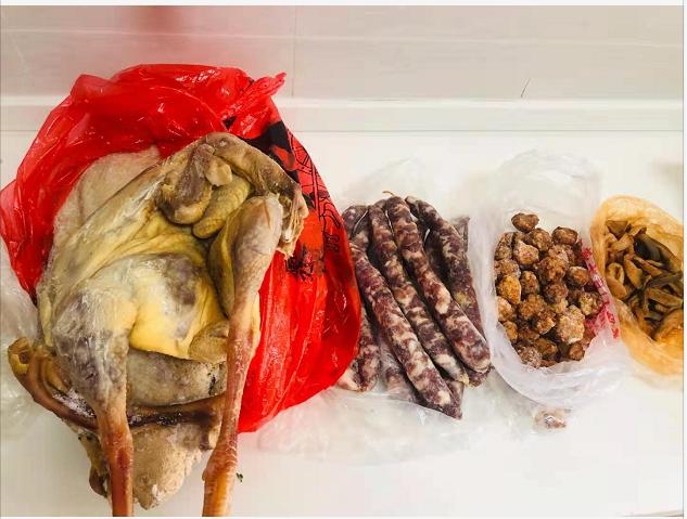 家在四川的小秋告诉深燃,妈妈全然不顾路程遥远,寄了香肠、麻糖,以及自己做的梅菜扣肉和鸡腿,物流跑了四天。“到的时候,梅菜扣肉和鸡腿已经不能吃了,但是妈妈冒着可能不能吃的风险也要给我寄。因为这算是她的拿手菜。”