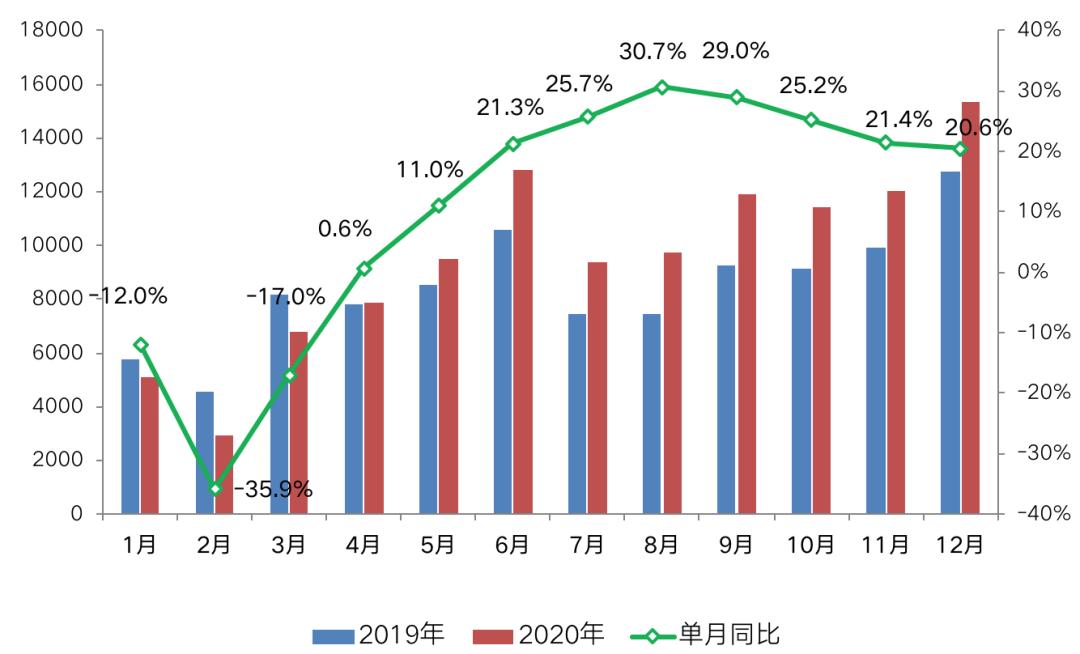 全年来看,在百强房企销售业绩在4月同比转正后,经历了几个月的“回血”,整体市场走出了深V曲线,直至9月,“三条红线”资管新政试行,房企拿地、开发、销售节奏都受到较大影响,在10月进一步降温后,11月,百强房企单月操盘金额销售环比增长5.1%,增速自8月的高位逐月回落至21.4%,截至12月末,部分规模房企业绩增速较2019年放缓,企业经营压力加剧,预计2021年会有更多规模房企的增速进一步放缓。