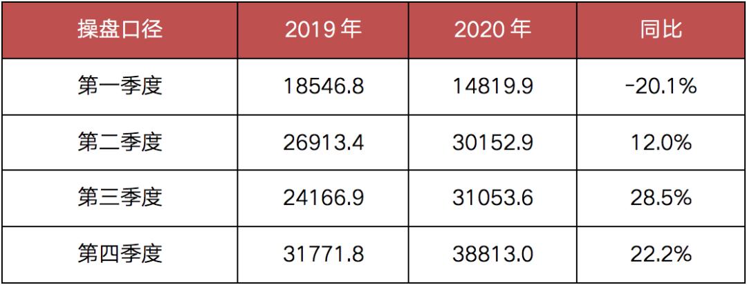 2020年,随着行业竞争格局加剧,各梯队房企之间不同口径的业绩增长也表现出一定的差异。
