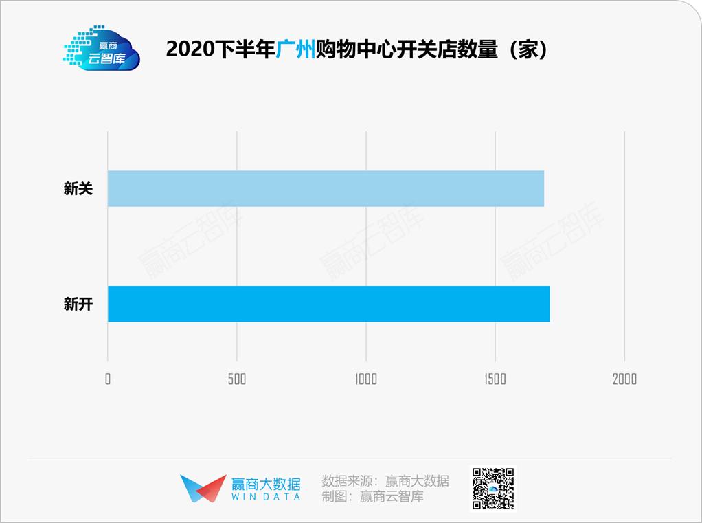 从需求端看,广州2020年下半年开关店达3399家,其中新开1711家,新关1688家。开店数略高于关店数,商场复苏迹象明显。