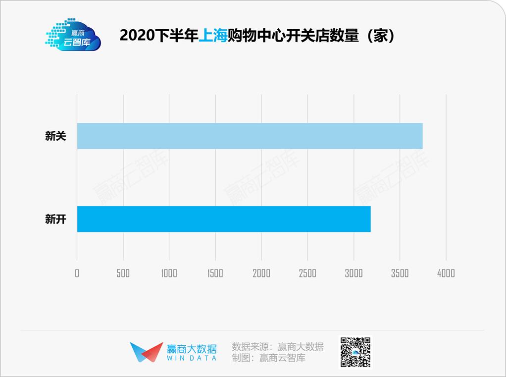 另一方面,从需求端看,据赢商大数据监测,去年下半年上海购物中心(商业面积≧5万㎡)开关店数量为6929家,总数居一线城市之首。