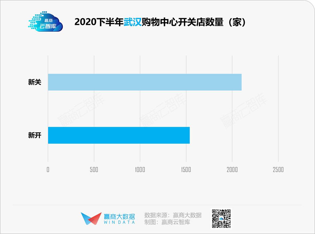赢商大数据显示,武汉2020年下半年品牌开关店总数达3641家,其中开店数为1538家,占比为42%,关店数量为2103家,占比为58%。