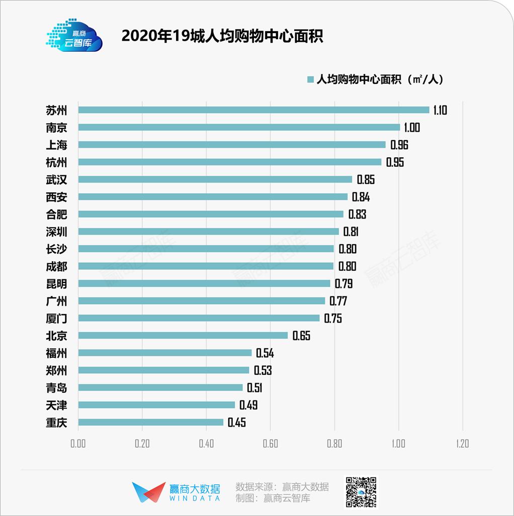 究其原因,苏州人均购物中心面积在19城中位居第一,达1.10㎡/人。疫情影响下,需求大幅下降,供需矛盾突出。据悉,去年下半年,苏州部分商圈除餐饮品牌外,商场首层时尚零售、生活方式类业态撤场的现象较为普遍。