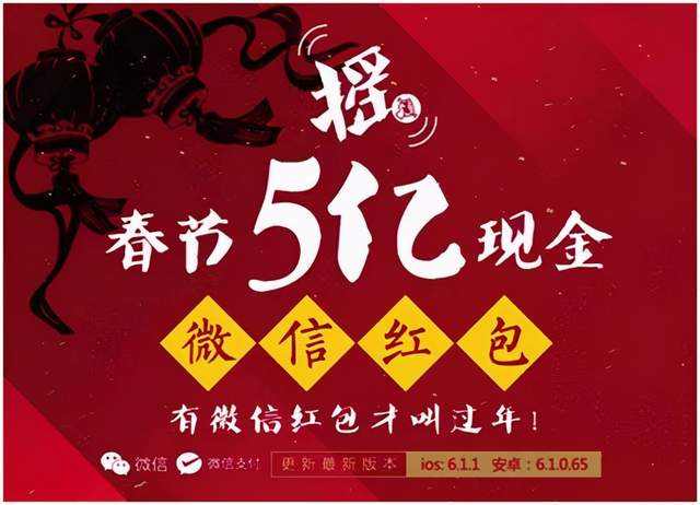 2015年羊年春晚,微信投入5300万元的营销费用成为了春晚发红包的开山鼻祖。因为红包的使用需要绑定银行卡,作为社交软件的微信借此成功“偷袭”支付宝跃升为支付龙头。而随后支付宝为了追赶微信,连续两年用“集五福”玩法打入了春节的众多活动中。