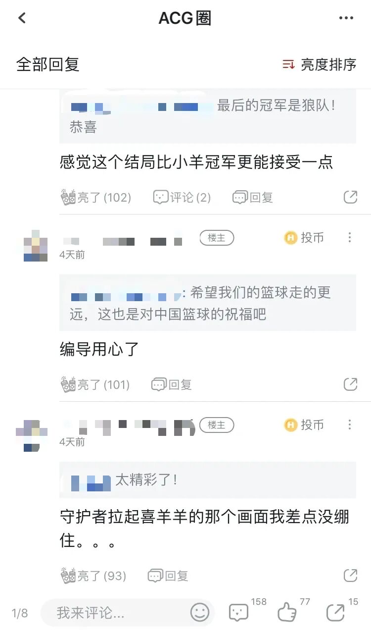 在篮球基因和卡通设定的双重加持下,《筐出胜利》突破了国产动画市场中运动番的用户壁垒。一位虎扑球迷这样写道:“日本孩子有他们的《灌篮高手》,现在中国孩子也有自己的《灌篮羔手》了。”