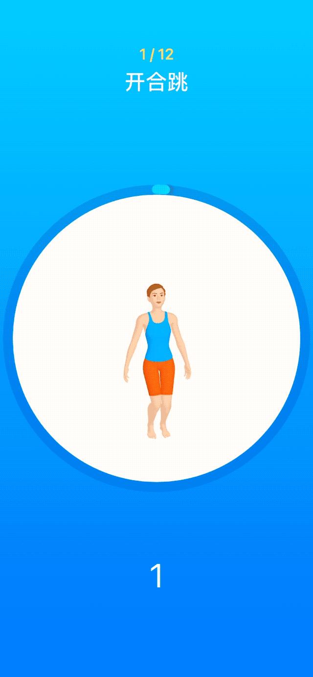 开始健身后,app 中心会出现一个三维模型人体,你可以通过旋转来查看动作的细节,也可以暂停上滑,查看健身计划。