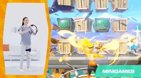 除了剧情,《健身环大冒险》还内置了丰富的小游戏,打箱子、打地鼠、做瓷器,锻炼身体的同时还考验了反应能力。《健身环大冒险》经过一次更新后,将 Switch 其他游戏里的知名配乐带入了《健身环大冒险》,让我们可以使用健身环来进行节奏练习。