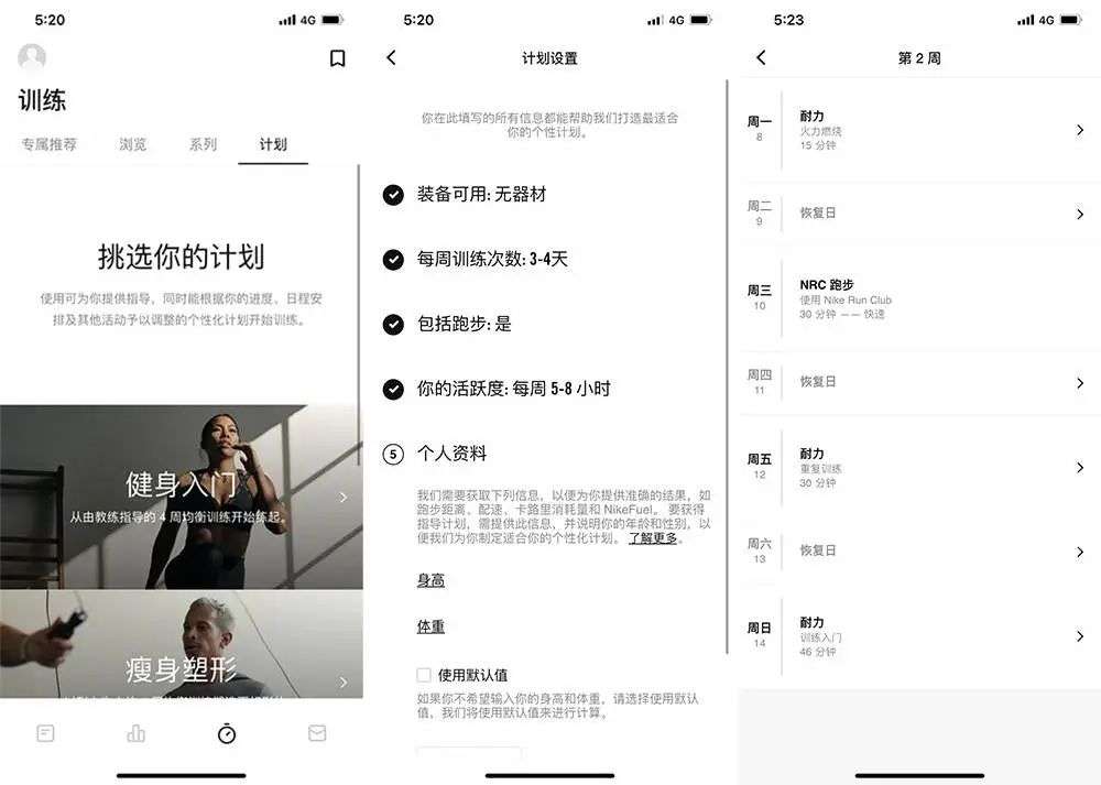 在《Nike Training Club》中,你可以根据需求填写一个简单的表单,让 app 为你生成一个每日 15~30 分钟的运动计划。《Nike Training Club》的运动计划不仅有「运动」,休息日也包含其中,让你能够更加健康、科学的强身健体。