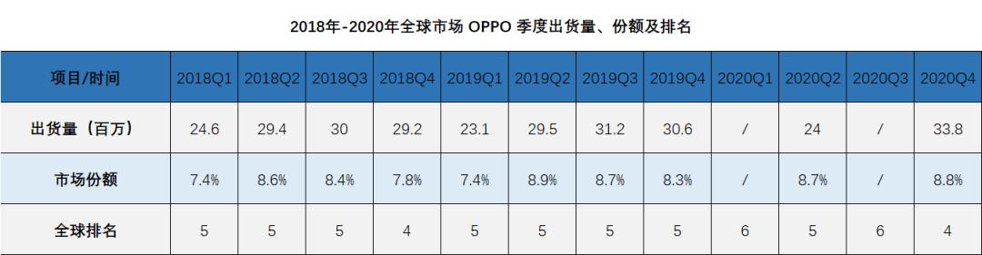 “战术回归”果然没让OPPO失望,IDC报告显示,2020年第四季度,OPPO以10.7%的同比增长再次回到全球第四的位置。