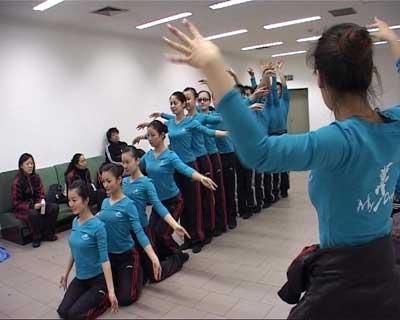 千手的难点在于,不同演员需要精确找到自己的动作位置,一个一个叠上去,差一点便容易乱掉。指导老师干脆每次排练都录下来,一遍结束后给大家放录像看,检查自己的错误在哪。