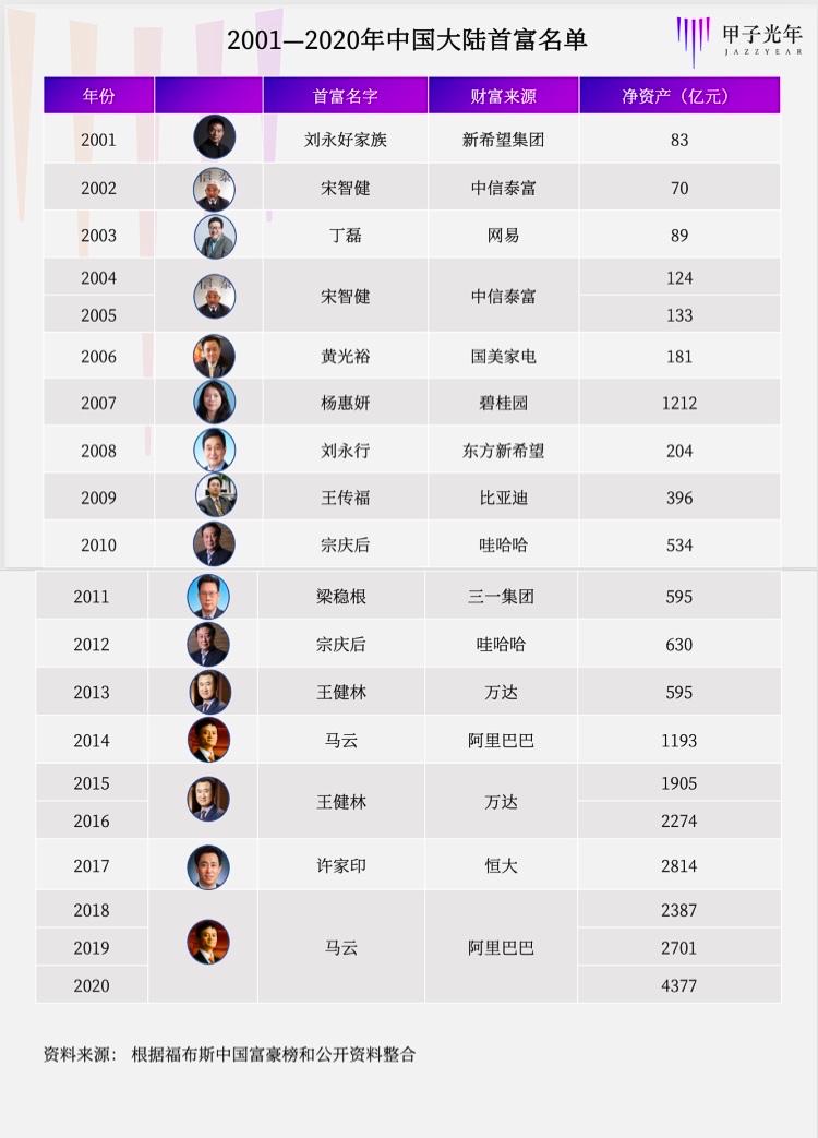 细数近20年年度首富变迁,有人多年蝉联,有人仅烜赫一时。