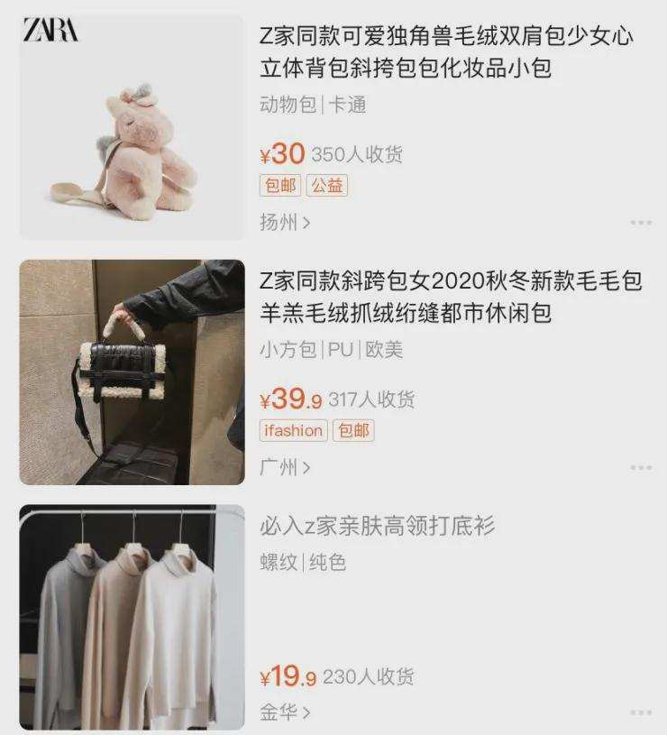 此外,虽说ZARA本身也是每年支付着数千万美金的抄袭败诉赔偿费,依靠着对大牌设计的抄袭,但这样的抄袭手法同样出现在了中国的电商。当搜索货号或是关键字,我们能看到中国的电商用更低的成本和更薄的利润成功的进行了山寨“套娃”,因此ZARA进一步陷入了尴尬的境地。