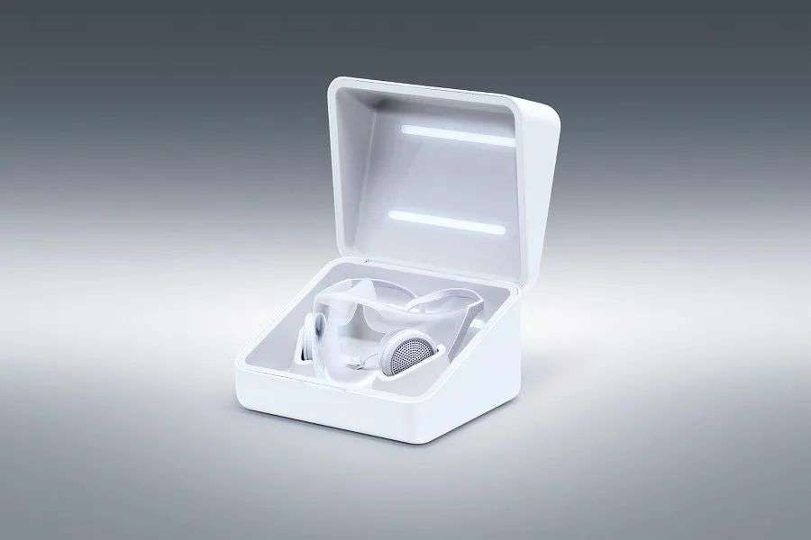 首先,这款口罩不是一次性的,而是配备一个紫外线消毒盒,摘下口罩后,将口罩放在消毒盒里进行消毒,就可以反复使用。另外,戴口罩的时候很多人会感觉到闷,那是因为人体呼出的二氧化碳在口罩内集聚,没有办法很好散开。
