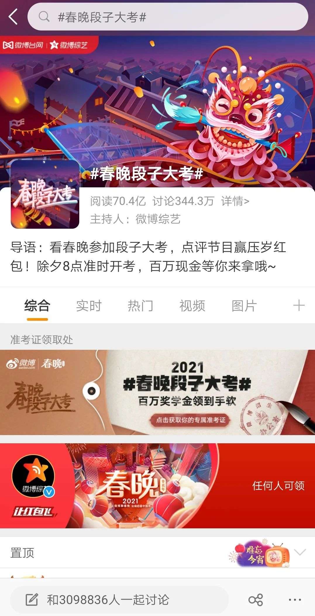 截至大年初一中午,微博话题#春晚段子大考#阅读量已经突破70亿
