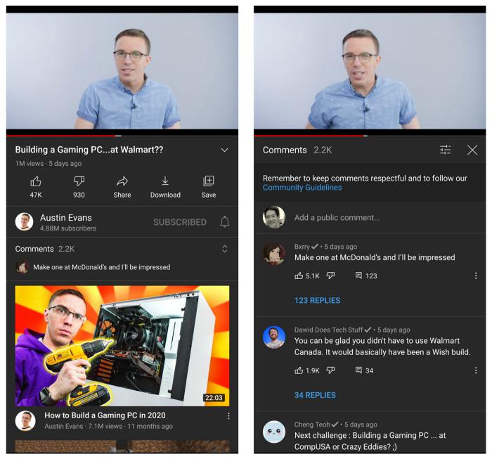 右侧展开的YouTube评论板块