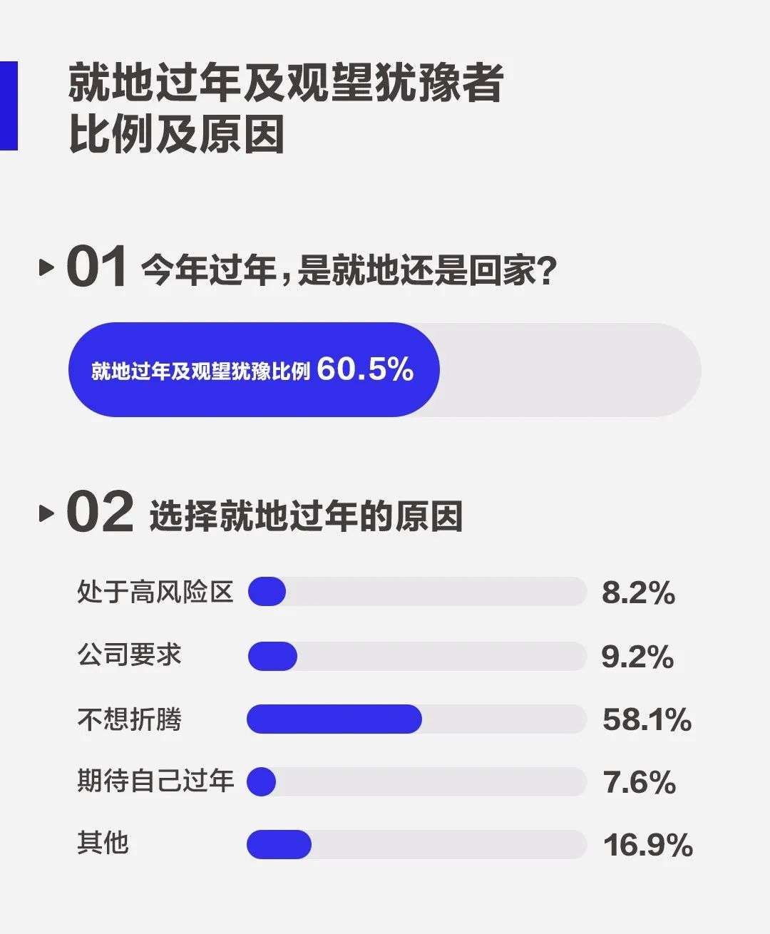 36氪发起了过年小调查,从我们收到的413份问卷结果显示,近六成人选择了就地过年。
