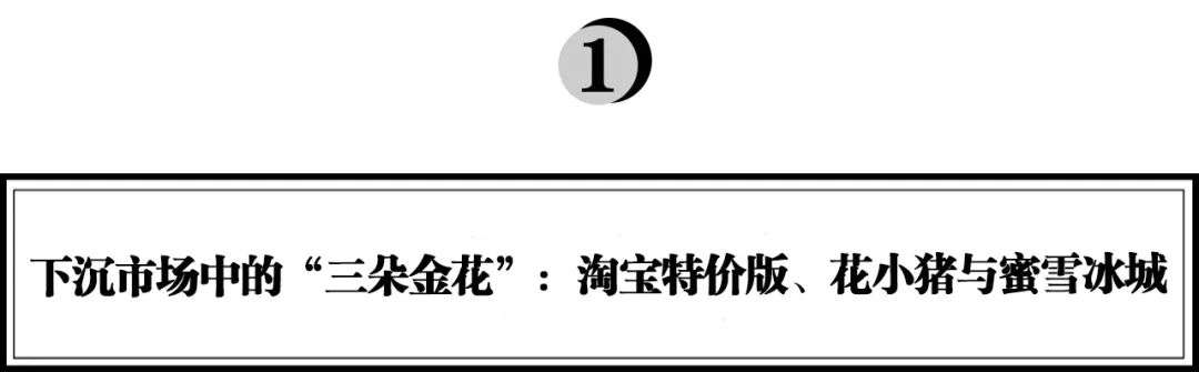 前者更多见于一些侧重于服务的平台型产品,后者则以消费品牌和连锁业态最为显著。而这其中,最值得称道的无疑是去年下沉市场的“三朵金花”:淘宝特价版、花小猪与蜜雪冰城。