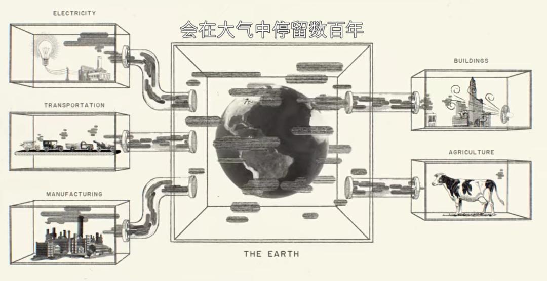 电力输送、生产制造、种植养殖等生产生活环节在总温室气体排放量中的占比分别达到27%,31%和19%。来源:纪录片《解码盖茨》的截图