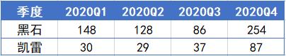 2020年各季度投资额,单位:亿美元,KKR无数据
