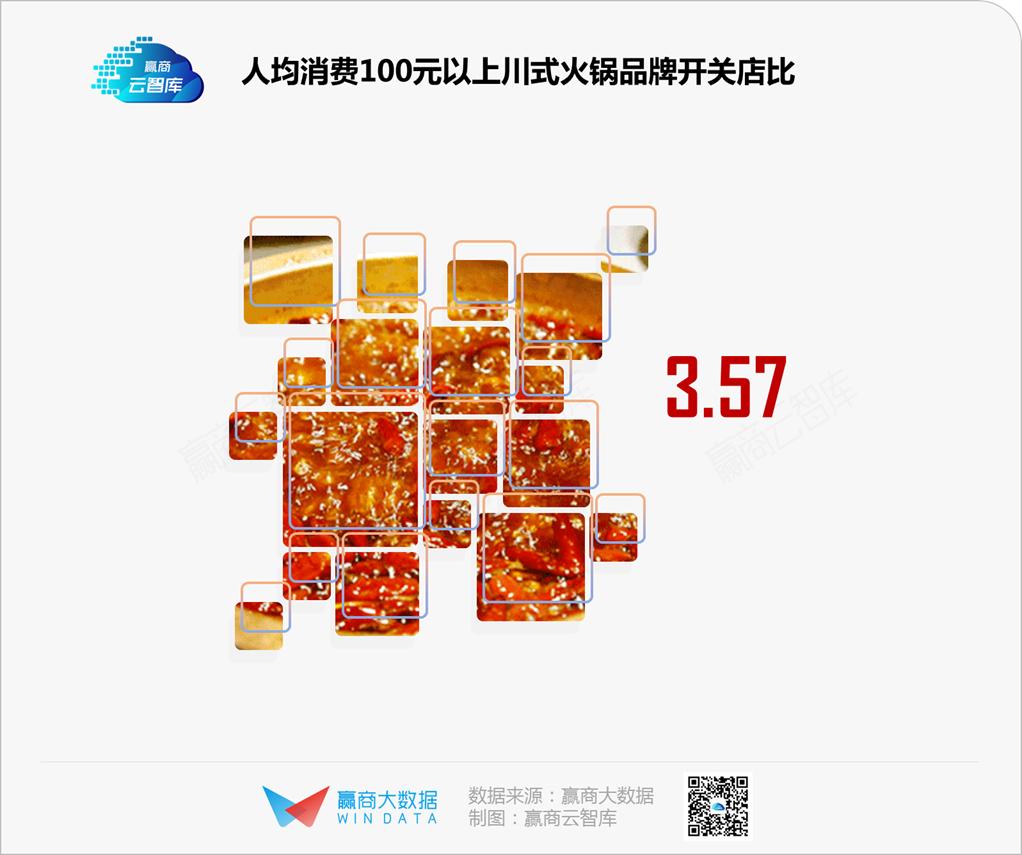 川式火锅牢牢占据头部位置,成“开店王”,开关店比达2.47;人均消费100元以上的品牌开关店比更是高达3.57,品质消费趋势突出。