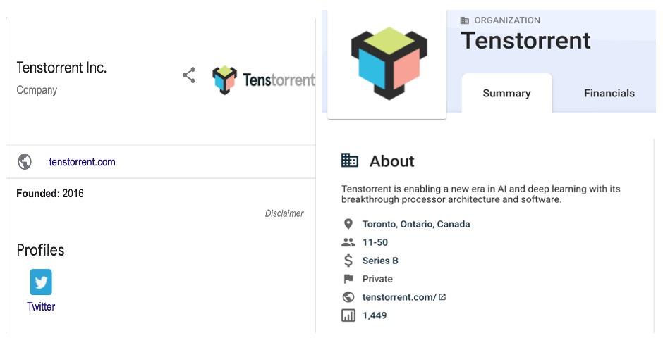 图 Tenstorrent寥寥无几的信息,图片截自于Google及Crunchbase