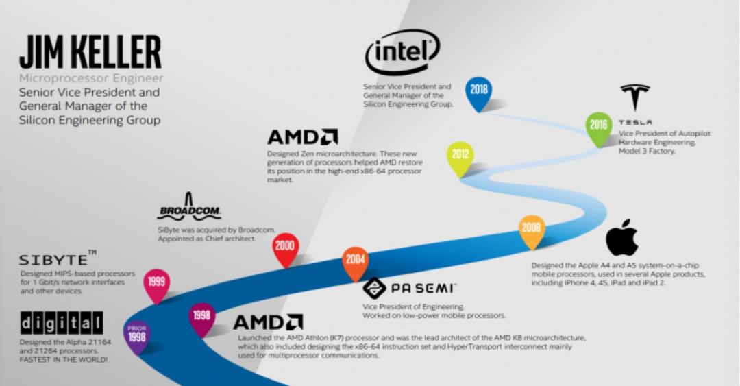纵观Jim Keller的职业生涯,他仿佛真的像一名身怀绝技的大侠,从未安扎于一处,也不曾停止追寻的脚步。
