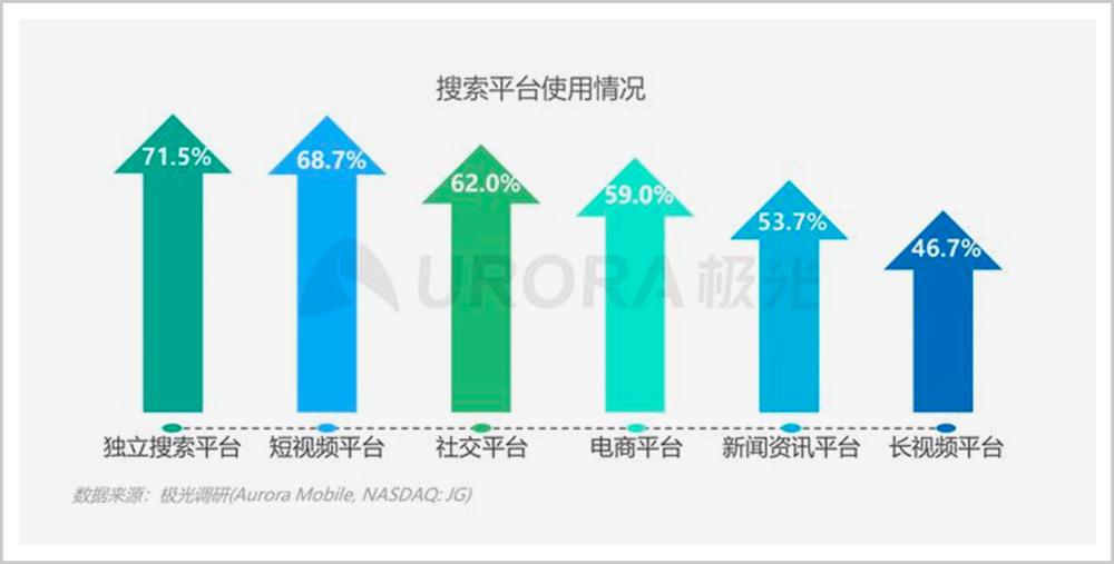 根据极光调研数据发现,用户的所有搜索行为中,有77.4%的搜索会发生在内容型平台。