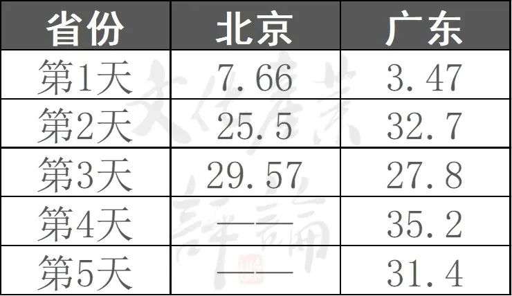 △北京、广东假期前五天等级景区网络预约数(单位:万人次)
