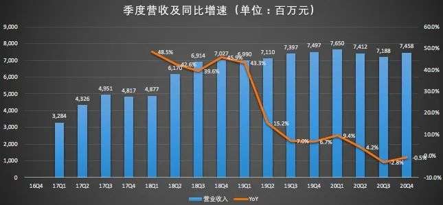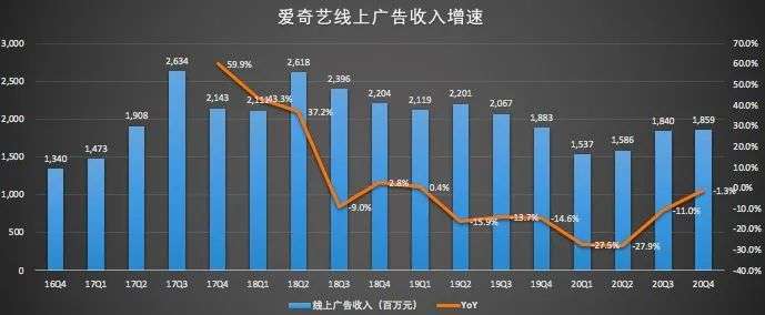 不过,随后国内疫情得到有效控制,爱奇艺会员服务收入重现下跌至7%,到了Q4,由于付费会员人数的下降,收入也呈现小幅缩水。