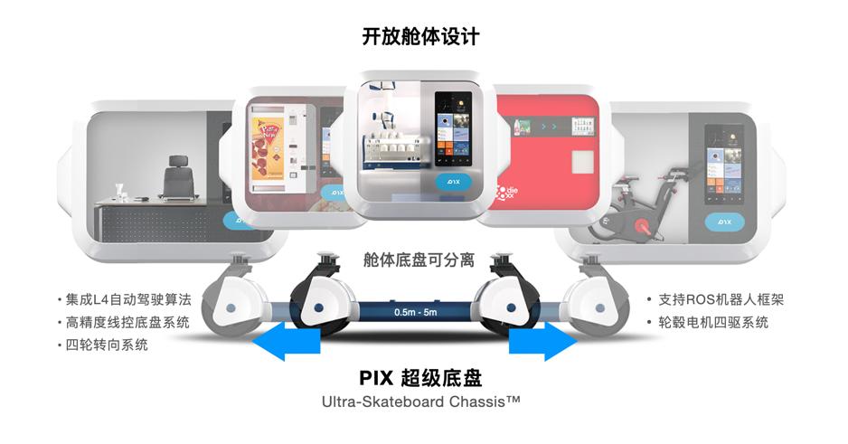 PIX超级底盘模块化架构满足长度 0.5m-5m、载重15kg-5000kg 范围,覆盖全场景(图源:PIX)