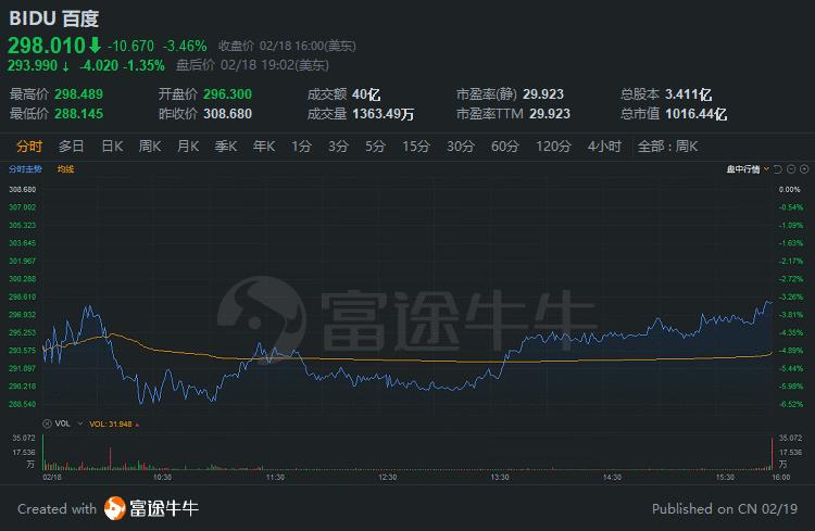 中概股3分钟 | 爱奇艺上演大逆转,收涨超2%;百度绩后倒跌超3%