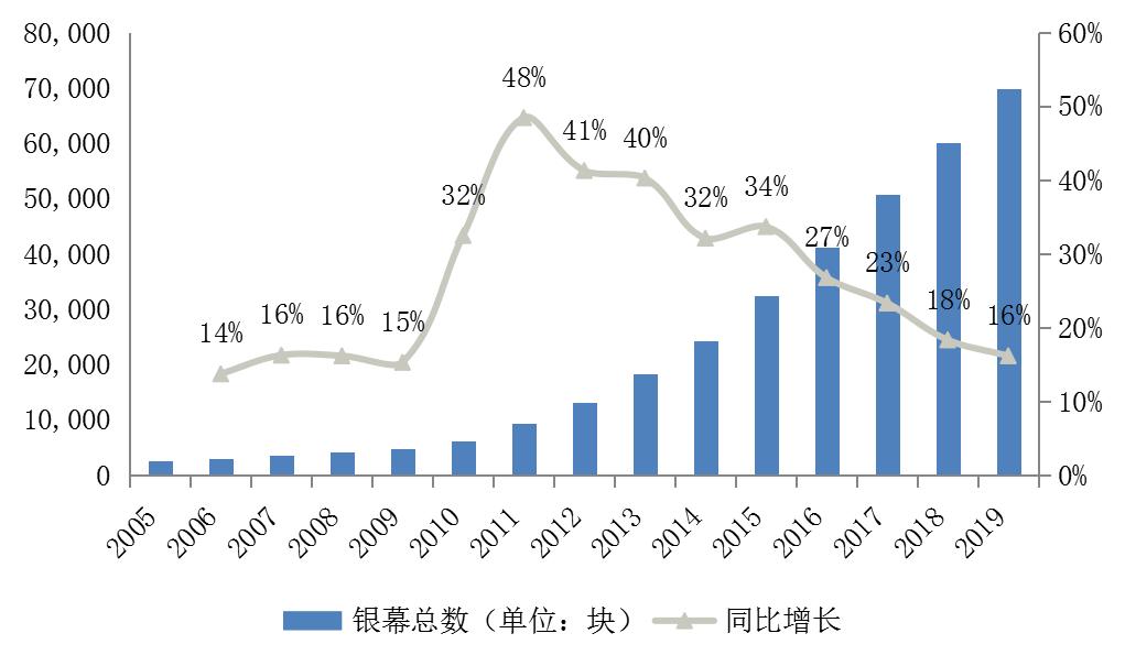 图5:中国电影银幕数在2010-2015年高速增长。资料来源:wind