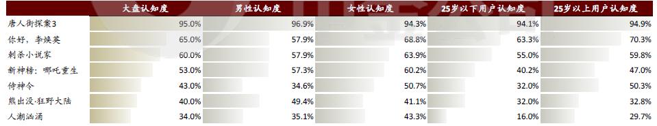 图3:春节档影片上映前观众认知度。资料来源:灯塔专业版,中金公司研究部。注:数据截至1月9日。