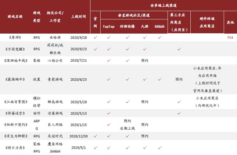 图8:未选择或延期上架安卓应用商店渠道的典型游戏产品。资料来源:中金公司研究部