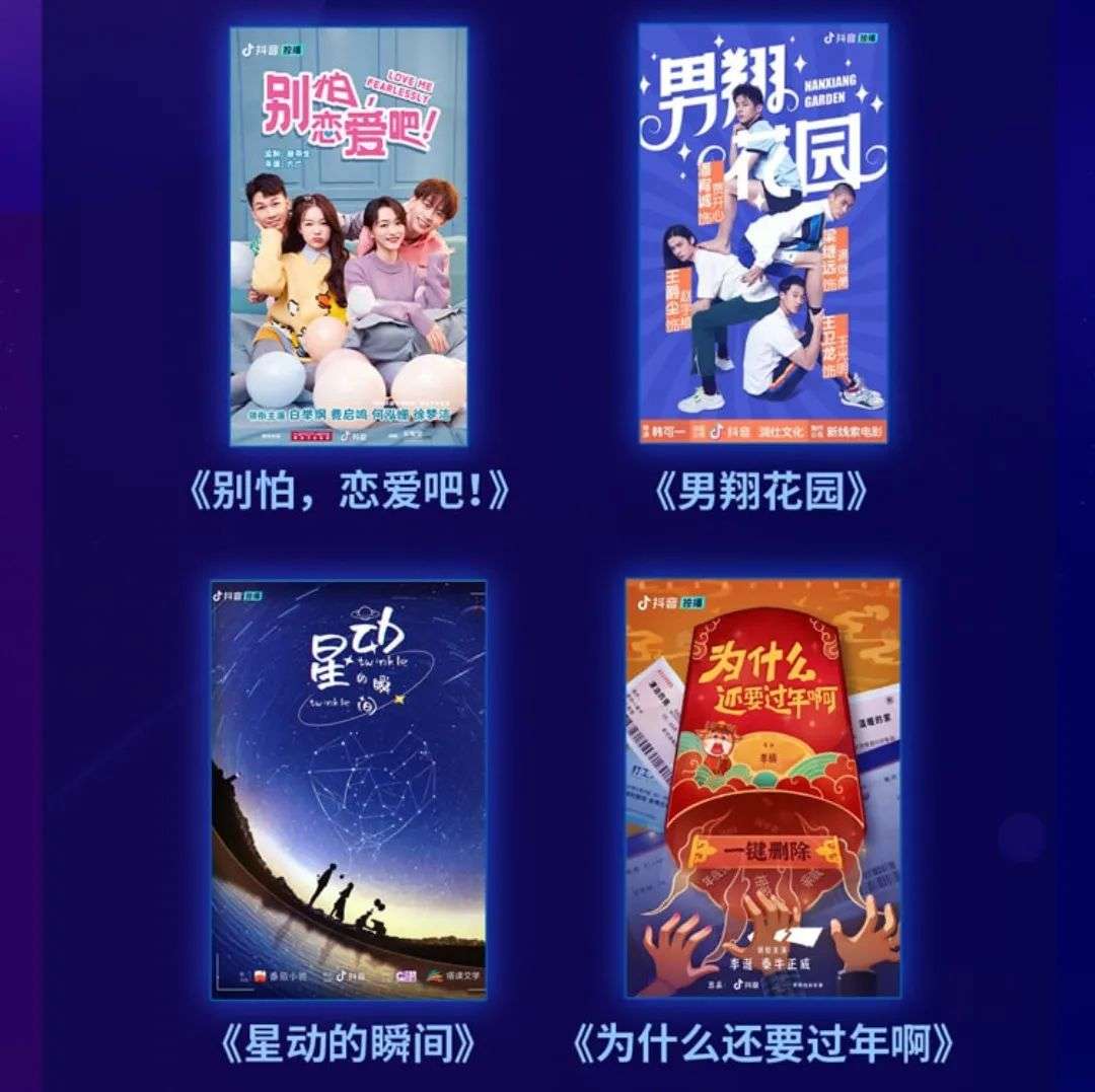 除此之外,抖音在2021年还将以“头部showcase+IP批量化+人格化培养”等多线共建抖音精品微短剧赛道,在接下来,还将会上线诸如《别怕,恋爱吧!》《男翔花园》《星动的瞬间》《为什么还要过年啊》等多部精品,继续扩大微短剧版图。