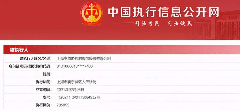 就在前不久,美特斯邦威被上海浦东新区法院列入执行人名单之中,执行金额为795055。
