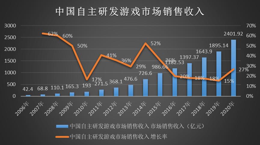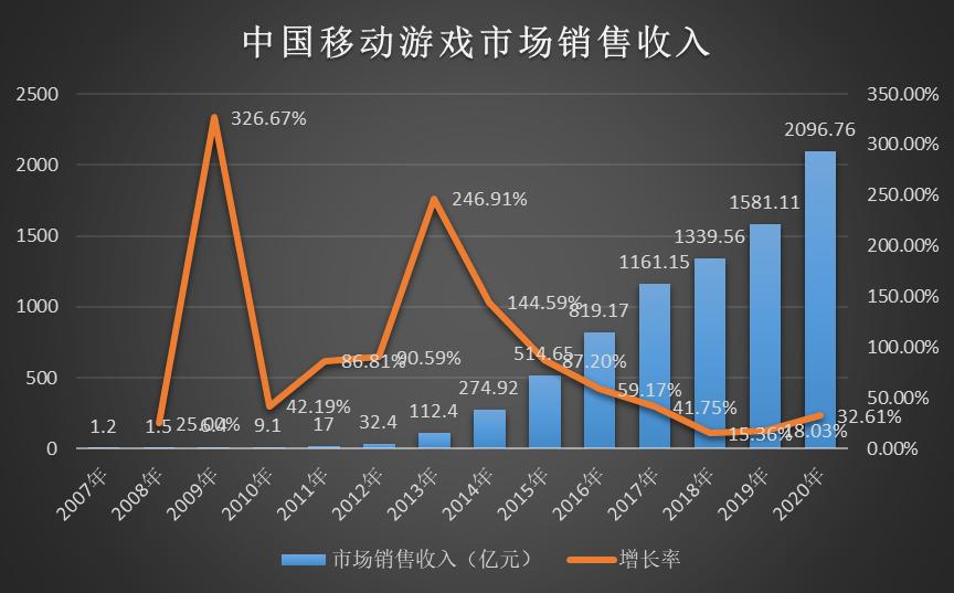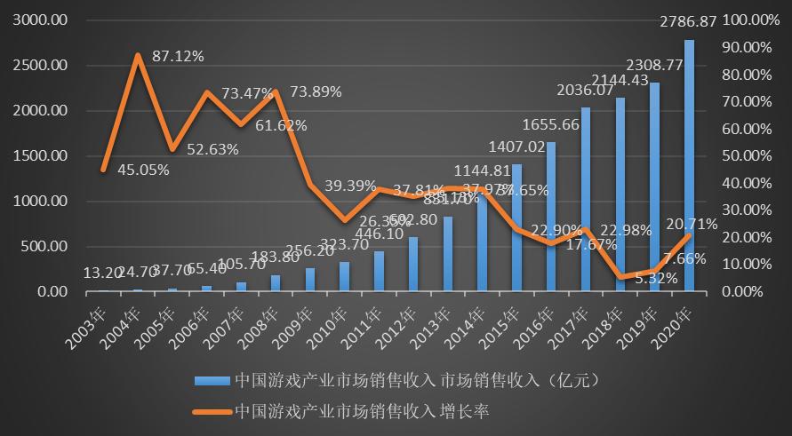 从数据上看,2020年的游戏产业总体上保持了增长,相对于过去两年的横向发展来看,去年的游戏产业在诸多因素的推动中增长率喜人:2020年中国游戏产业市场销售收入达到2786.67亿元人民币,增长从两年前的5.32%和7.66%回升到20.71%。
