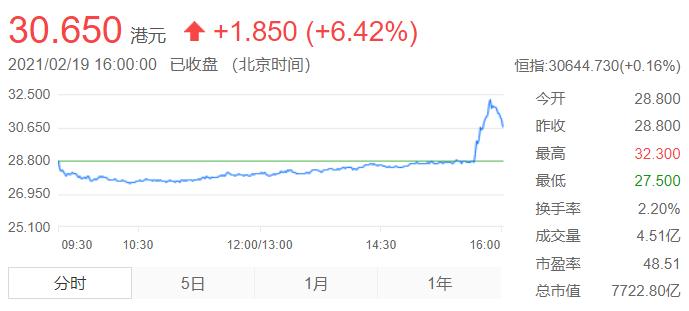 受此消息影响,早间一度跌4%的小米集团尾盘快速拉升,一度涨超12%,最终收涨6.42%,公司市值达到7722亿港元。