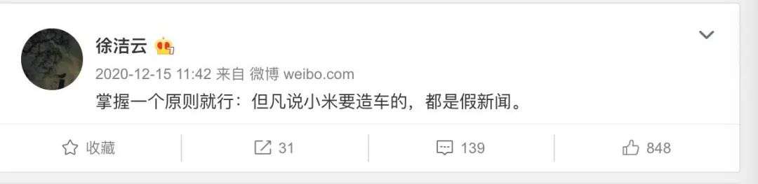 但当时小米回应称没有造车计划,希望不信谣不传谣。前小米公关部总经理徐洁云更是在社交媒体上表示“但凡说小米要造车的,都是假新闻”。