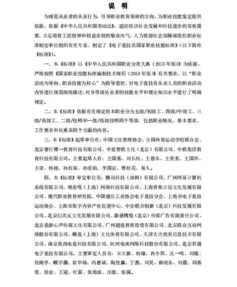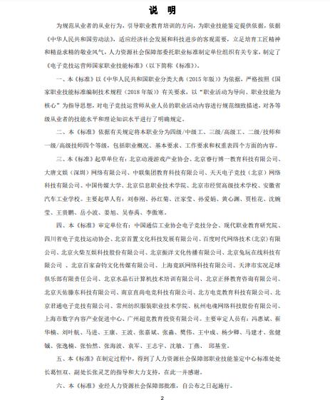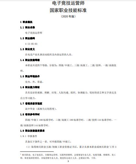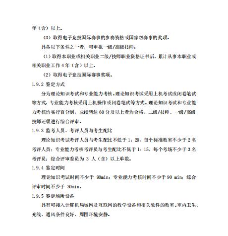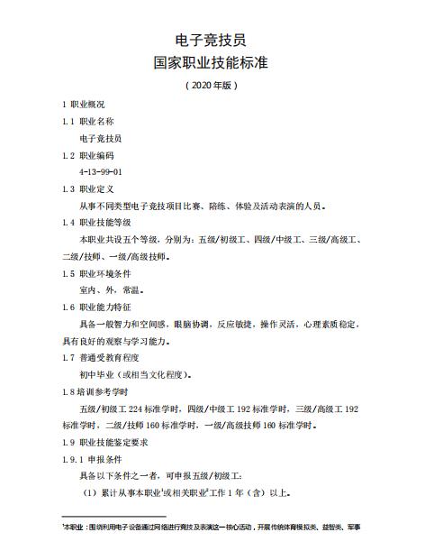 以下附《电子竞技员国家职业技能标准》和《电子竞技运营师国家职业技能标准》全文: