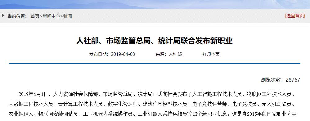 人社部将两个电竞相关职业归入信息化的广泛应用衍生新职业中,表示在国际赛事的推动下,基于计算机的竞技项目发展迅猛,电子竞技已成为巨大的新兴产业,电子竞技运营师和电子竞技员职业化势在必行。