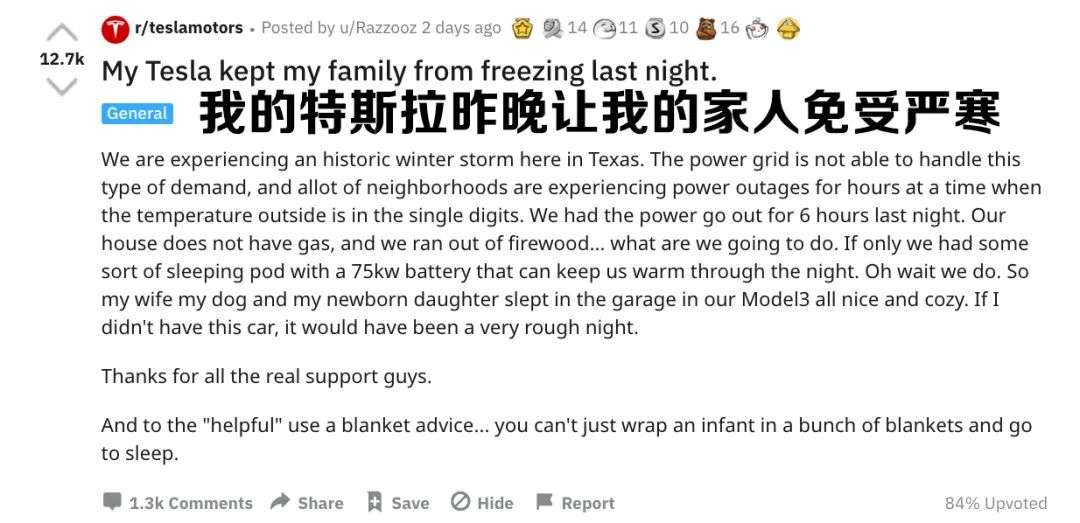 在电网崩溃的美国得州,有人靠特斯拉挺过零下18℃的漫长寒夜