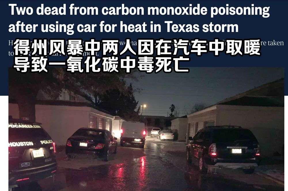 不同寻常的取暖方式引发了多起悲剧:休斯顿一家四口躲到燃油车里,关上窗开着暖气睡觉,结果母亲和女儿不幸因一氧化碳中毒死亡,父亲和儿子被送往医院救治;还有一名祖母和三个孩子,因取暖的壁炉失火延烧而丧生。