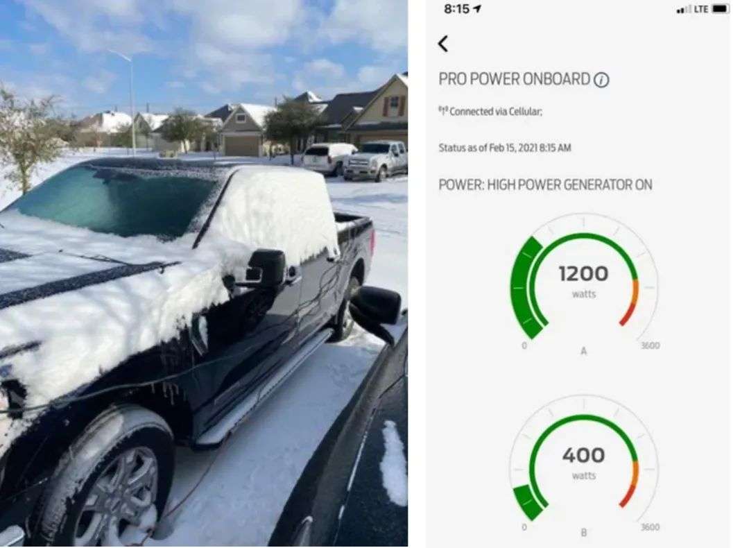 “皮卡拯救了我们,如果没有它,那将是痛苦的几天。”杰瑞说,自己购买这款皮卡就是看中了车载发电功能,因为去年春天,恶劣天气也曾导致得州部分地区停电。