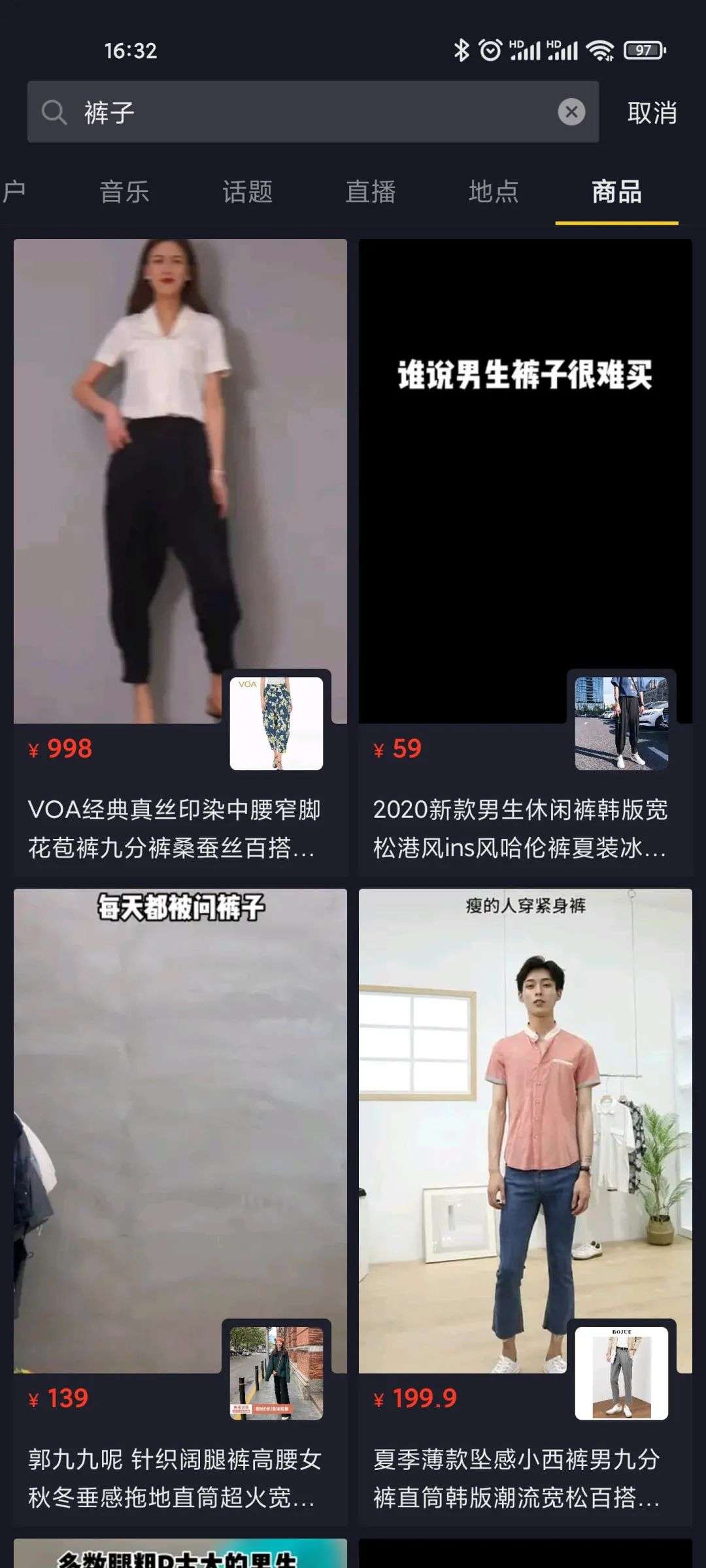 除了视频和音乐等内容强相关的结果,抖音搜索还会呈现直播、地点、商品等内容。这些内容看起来和短视频八竿子打不到一块,却恰好是抖音正极力拓展的直播、电商和线下业务的一部分,它们又以短视频链接、账号头像引导等形式与抖音庞大的短视频生态共生。